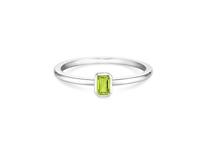 Damenring aus 585/- Weißgold, poliert, mit 1 grünen Peridot im Emerald (Smaragd) Schliff gefasst in Zargenfassung