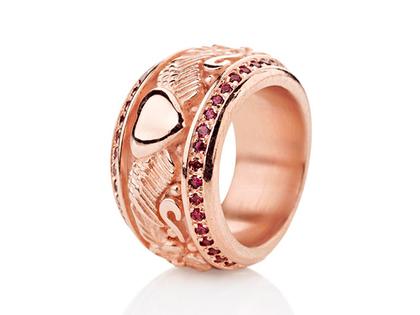 Bandring 925/- Silber rotgoldplattiert mit Rhodolithpavée 15mm breit