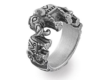 Drachenfels Design Ganesha Elefant Ring Silber vintage
