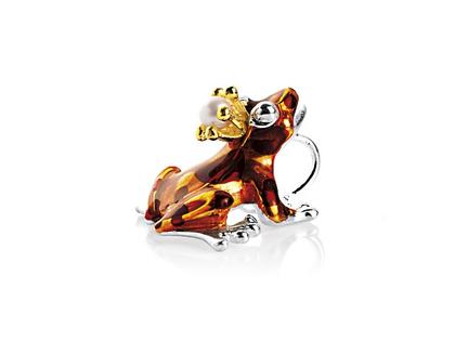 großer Anhänger (ca. 25 mm x 25 mm), 925/- Silber mit goldplattierter Krone und 1 Perle, Frosch mit rotem Lack