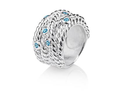 Damenring aus 925/- Silber, Struktur Geflecht, 22 mm breit, mit mehreren Topasen