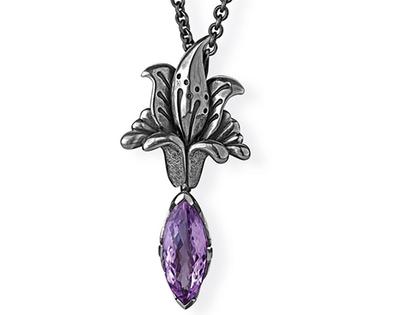 Anhänger aus 925/- Silber in Vintagelook, großer Blüten Anhänger mit Einhängeöse für Quaste oder Zarge + Großer Amethyst Navette Anhänger mit Klappöse