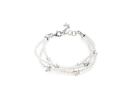 Armband mit Sternen, 925/- Silber, mit Süßwasserbutton 3-3,5 mm, 19-23 cm lang mit Karabinerverschluss