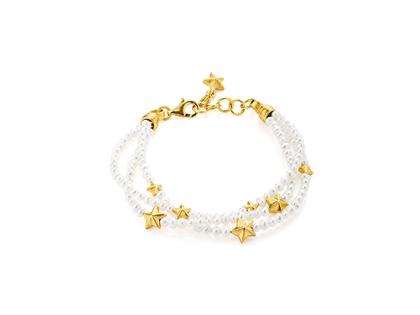 Armband mit Sternen, 925/- Silber gelbgoldplattiert, mit Süßwasserbutton 3-3,5 mm, 19-23 cm lang mit Karabinerverschluss