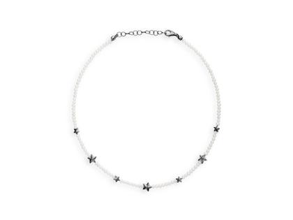 Collier Sterne und Kalotten, 925/-Silber im Vintage Look mit Süßwasserbutton 3-3,5 mm, mit Verlängerungskettchen und Karabinerverschluss, 42-47 cm lang