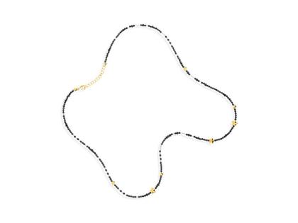 Collier Sterne, Steinmixkette mit Onyxen, Bergkristall, Hämatit, Steine facettiert, 925/- Silber gelbgoldplattiert, Karabinerverschluss, 80 - 85 cm lang