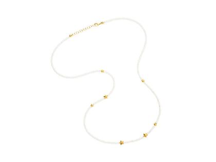 Collier Sterne, 925/- Silber gelbgoldplattiert mit Süßwasserperlen 3-3,5 mm, Karabinerverschluss und Verlängerungskettchen, 80 - 85 cm lang
