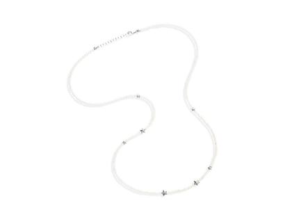 Collier Sterne, 925/- Silber mit Süßwasserperlen 3-3,5 mm, Karabinerverschluss und Verlängerungskettchen, 80 - 85 cm lang