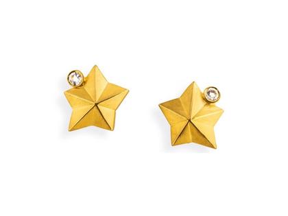 großer Sternenclipohrstecker aus 925/- Silber gelbgoldplattiert mit je einem facettierten Bergkristall im Durchmesser von 3 mm, Ohrstecker im Durchmesser von 14 mm
