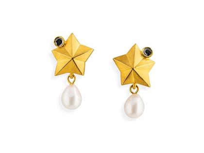 Drachenfels Design Sternenglanz und Schattentanz Ohrstecker Sternenclipohrstecker groß Onyx Pampel Süßwasserperle gelbgoldplattiert