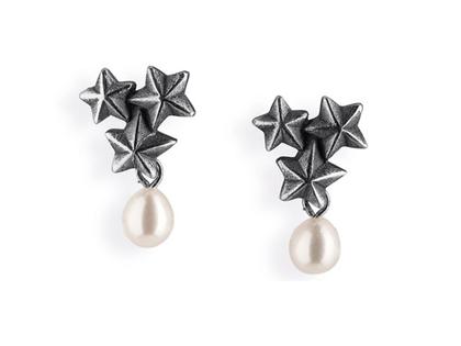Drachenfels Design Sternenglanz und Schattentanz Ohrstecker Sternenohrstecker Pampel Süßwasserperle klein Silber Vintage