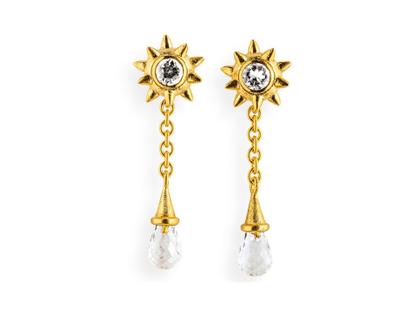 Drachenfels Design Sternenglanz und Schattentanz Ohrstecker Wurfstern groß Bergkristall gelbgoldplattiert