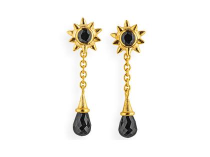 Drachenfels Design Sternenglanz und Schattentanz Ohrstecker Wurfstern groß Onyx gelbgoldplattiert