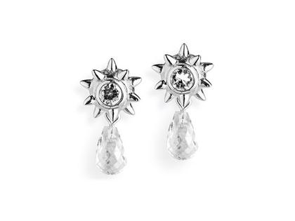 kleiner Wurfsternohrstecker mit Bergkristallpampel, 925/- Silber mit facettierten Bergkristallen im Durchmesser von 5 mm und Bergkristallpampel, Ohrsteckerhöhe mit Pampel 21 mm