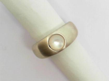 Basisring aus 925/- Silber, mattiert, mit auswechselbarem weißen Perlmutt-Dömchen, verlaufend