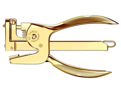 Heftzange aus Stahl, Galvanisiert in Kupfer, Nickel und abschließend in 23-Karat vergoldet, handpoliert - inklusive Geschenkbox