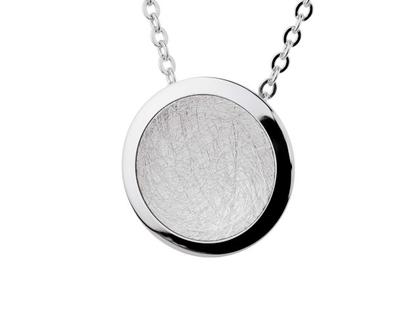 runder Anhänger aus Edelstahl, Rand poliert, Innenfläche gekratzt, ca. 20mm Durchmesser