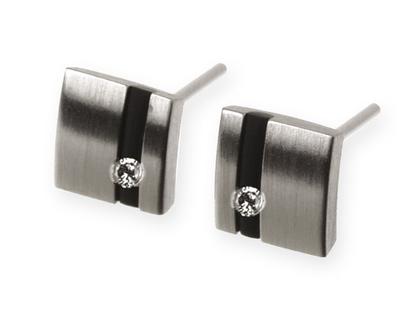 Ernstes Design Edelstahlschmuck mit Brillant: Ohrstecker mit Kautschuk