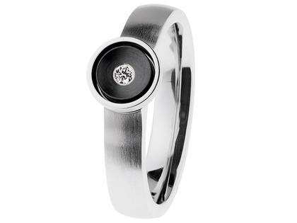 Edelstahlring, matt/poliert, teilweise schwarz beschichtet, 4 mm breit, 1 Brillant 0,02 ct TW si