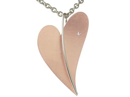 Anhänger Edelstahlherz rotvergoldet, matt mit poliertem Edelstahlsteg, mit 1 Brillant, 0,065 ct TW / si, Herzgröße 37 x 54 mm