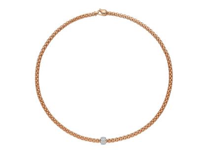 Collier aus 750/- Roségold poliert, eine 750/- Weißgold-Ronde mit Brillanten zusammen 0,290 ct TW vsi, Karabinerverschluss, 43 cm lang, leicht flexibel
