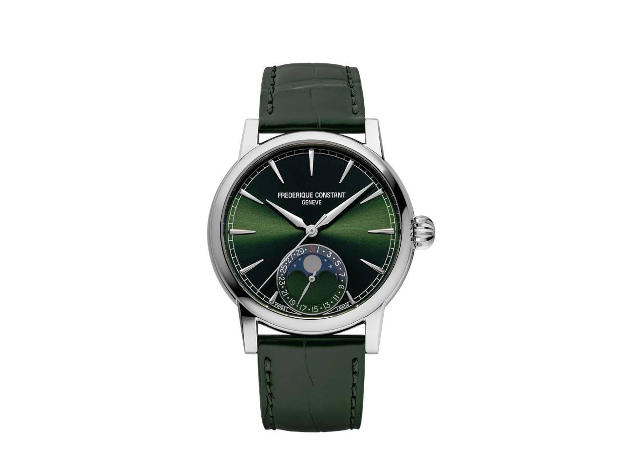 Frederique Constant Classic Moonphase Date Manufacture Automatik Edelstahl 40mm grünes Zifferblatt grünes Lederband