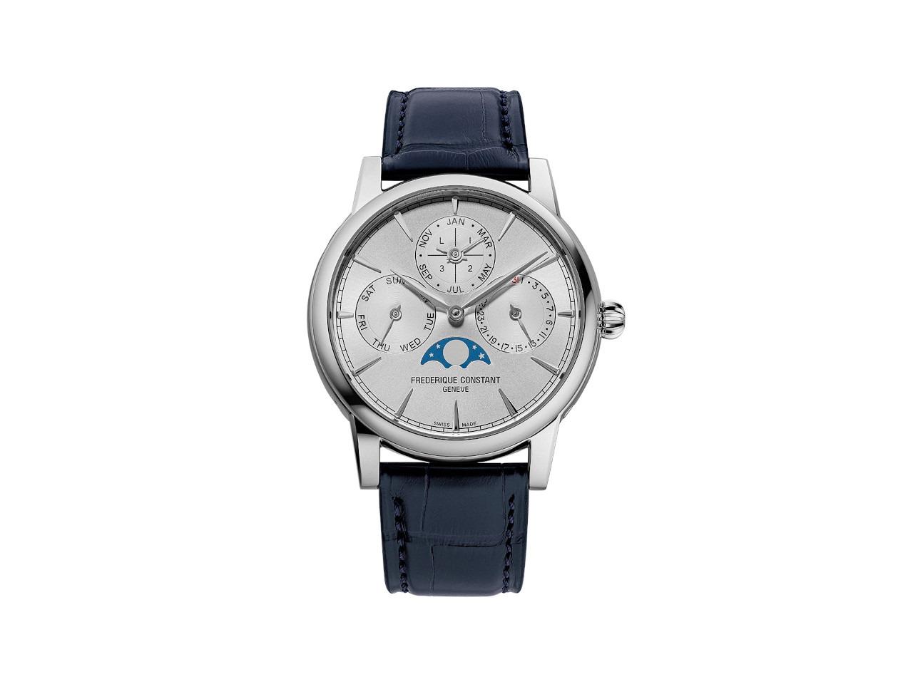 Frederique Constant Classic Perpetual Calendar Manufacture Automatik Edelstahl 40mm silbernes Zifferblatt Lederband