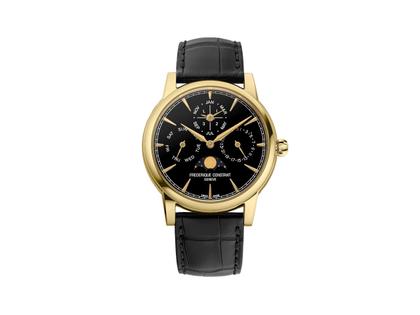 Frederique Constant Classic Perpetual Calendar Manufacture Automatik Gelbgold 40mm schwarzes Onyx Zifferblatt Lederband
