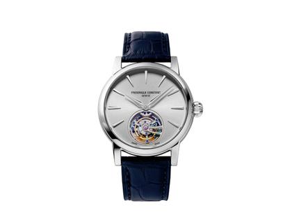 Frederique Constant Classic Tourbillon Manufacture Automatik Edelstahl 40mm silberfarbenes Zifferblatt blaues Lederband Limited Edition