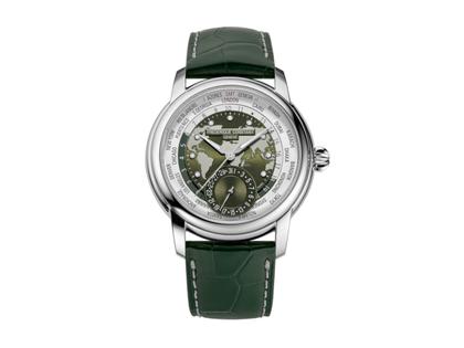 Bisher war die Classic Worldtimer Manufacture in den drei dominierenden Farben der Erde gehalten: Weiß des Tages, Schwarz der Nacht und Ozeanblau. Nun wurden zwei neue limitierte Editionen in einer vierten Farbe hinzugefügt: Waldgrün. Jede Uhr befindet sich in einem 42-Millimeter-Gehäuse aus Stahl (718 Uhren), verfügt über eine Weltkarte auf dem Zifferblatt, ein Datumsfenster und ein dunkelgrünes Lederarmband, und ist mit einer Reihe von Veredelungen geschmückt. Das Manufakturkaliber ermöglicht dem Träger, die Zeitzonen der 24 Städte auf der 24-Stunden-Scheibe abzulesen und bietet zusätzlich eine Datumsanzeige durch einen Zeiger. Im ständigen Streben nach Einfachheit werden alle Funktionen über die Krone eingestellt.