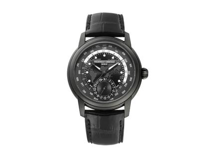 Frederique Constant Classics Worldtimer GMT Manufacture Automatik Edelstahl Schwarz-PVD 42mm schwarzes Zifferblatt schwarzes Lederband Limited Edition