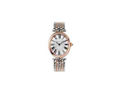 Frederique Constant Classics Art Deco Oval Quarz Edelstahl 30x25mm weißes Zifferblatt zweifarbiges Metallband
