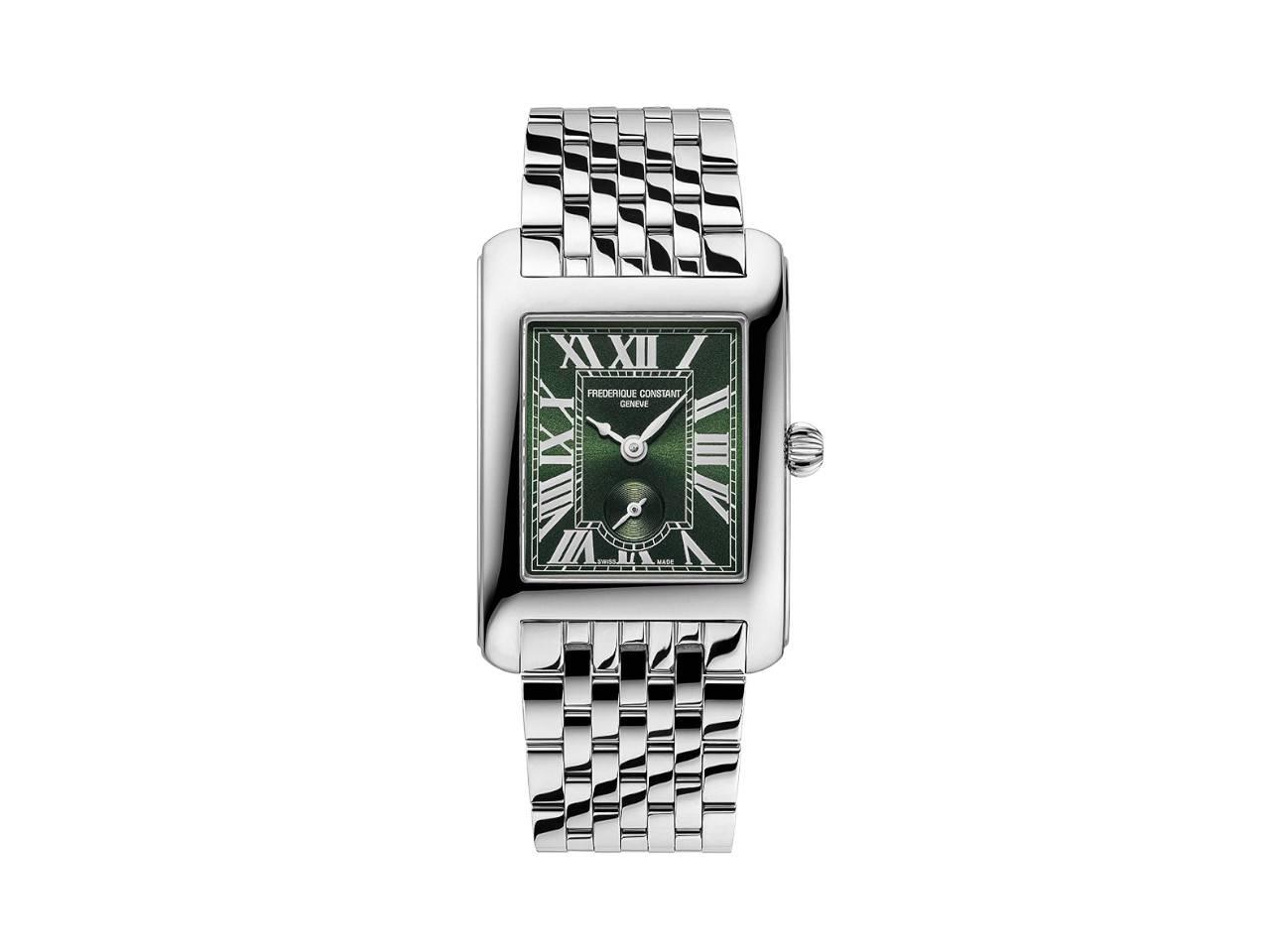 Frederique Constant Classics Carree Small Seconds Quarz Edelstahl 36x25mm grünes Zifferblatt Metallband