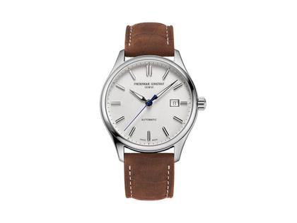 Frederique Constant Classics Index Automatik Edelstahl 40mm silberfarbenes Zifferblatt braunes Lederband