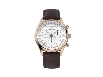 Frederique Constant Classics Triple Calendar Chronograph Quarz Edelstahl Roségold-PVD 40mm weißes Zifferblatt braues Lederband