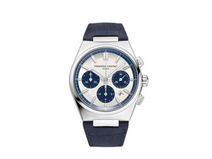 Frederique Constant Highlife Chronograph Automatic Edelstahl 41mm weiß-blaues Zifferblatt blaues Lederband Limited Edition