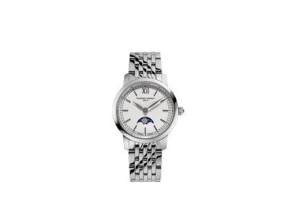 Frederique Constant Slimline Ladies Moonphase Quarz Edelstahl 30mm weißes Zifferblatt Metallband