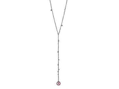 925/- Silber schwarz , 750/- Weißgold, Diamandbriolettes 1,890 - 2,310 ct grau, 10 Brillanten 0,060 ct grau, pinkfarbene Süßwasserperle 11 - 12 mm, Länge 80 + 15 cm, endlos