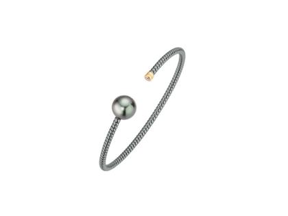 Armspange aus 925/- Silber poliert und grau rhodiniert, Endstück aus 750/- Roségold mit 1 Brillant 0,025 ct tlb si, 1 Tahiti-Zuchtperle dunkel 11,0 - 12,0 mm semi rund