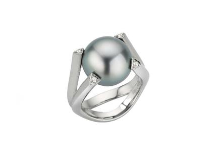 Gellner Wave Ring Platin mit Maruteaperle und Brillanten 0,072ct