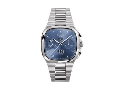 Glashütte Original Seventies Chronograph blaues Zifferblatt Metallband