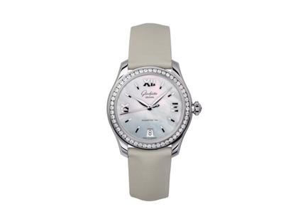 Glashütte Original Lady Serenade Automatik Edelstahl 36mm Perlmutt-Zifferblatt mit Brillanten beiges Textilband