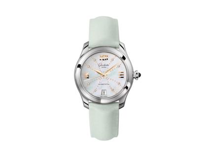 Glashütte Original Lady Serenade Automatik Edelstahl 36mm Perlmutt-Zifferblatt mit Brillanten mintgrünes Textilband