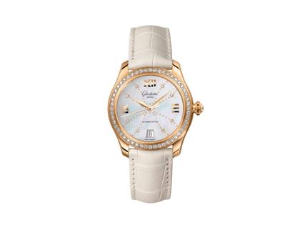 Glashütte Original Lady Serenade Automatik Roségold 36mm Perlmutt-Zifferblatt mit Brillanten weißes Lederband