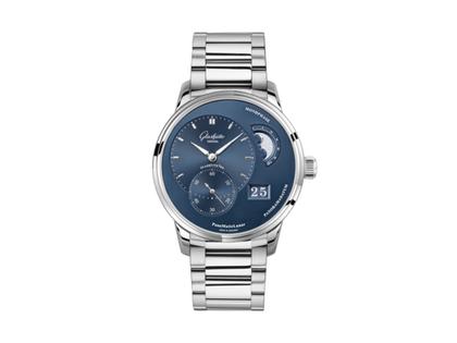 Glashütte Original PanoMaticLunar Automatik Edelstahl 40mm blaues Zifferblatt Metallband