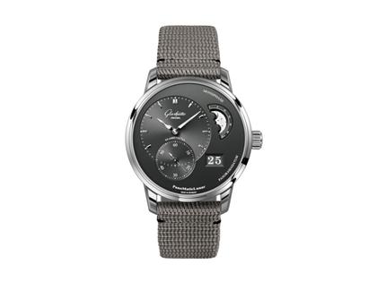 Glashütte Original PanoMaticLunar Automatik Edelstahl 40mm graues Zifferblatt graues Textilband
