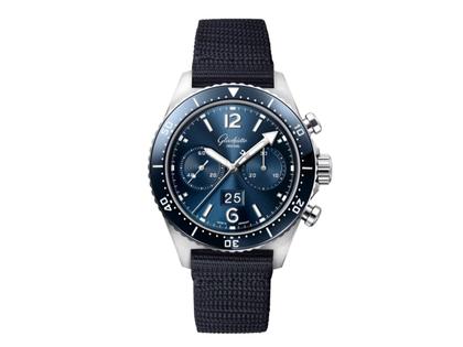 Glashütte Original SeaQ Chronograph Automatik Edelstahl 43mm blaues Zifferblatt blaues Textilband