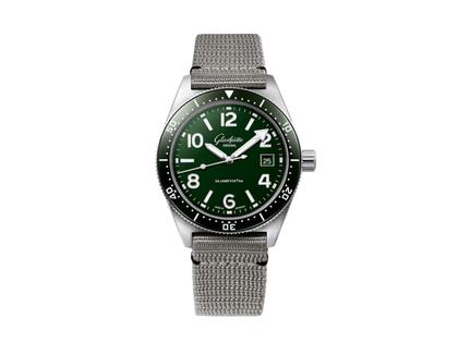 Glashütte Original SeaQ Automatik Edelstahl 40mm grünes Zifferblatt graues Textilband