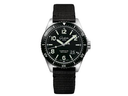 Glashütte Original SeaQ Panoramadatum Automatik Edelstahl 43mm schwarzes Zifferblatt schwarzes Textilband