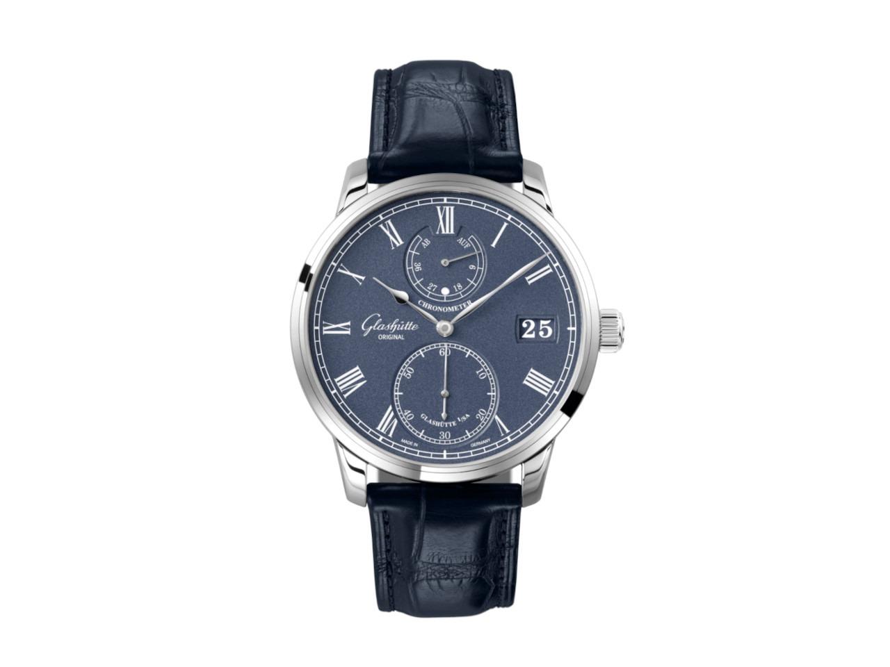 Glashütte Original Senator Chronometer Handaufzug Weißgold 42mm blaues Zifferblatt blaues Lederband